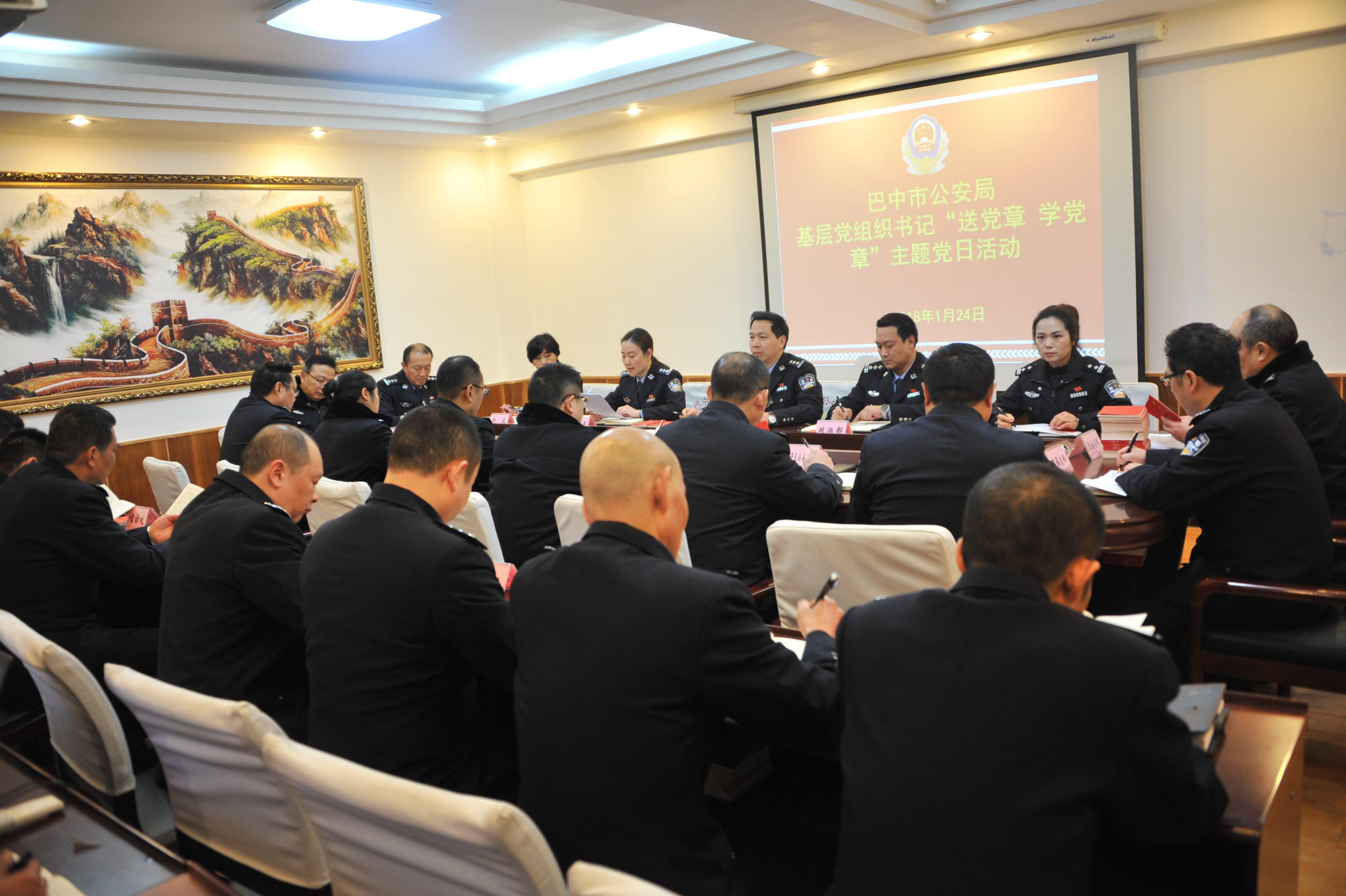 市公安局机关党委按照市直工委关于开展支部主题党日活动的安排部署,组织开展了市局基层党组织书记“送党章,学党章”主题党日活动。活动由市局党委委员、机关党委书记秦东主持,市局直属巴州区、经开区、恩阳区机关党委(总支)书记,机关交警总支和22个支部书记参加了活动。