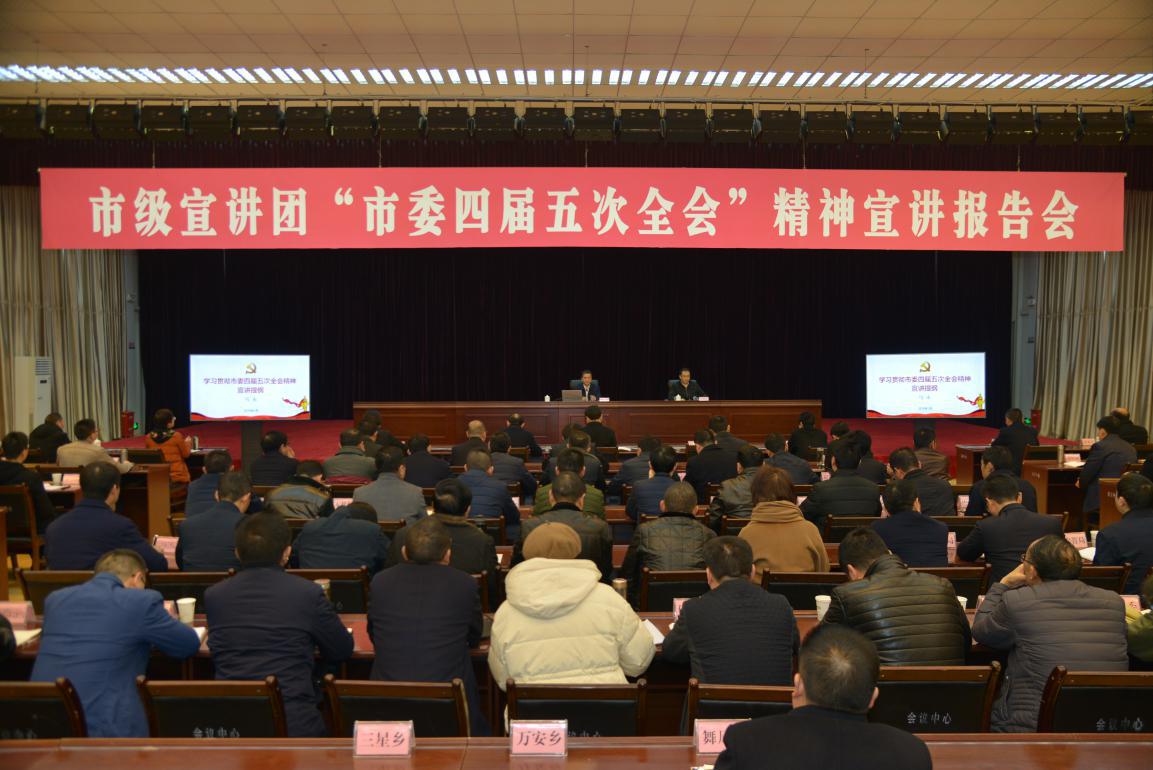 为进一步学习宣传贯彻市委四届五次全会精神,根据市委相关要求,1月29日,市直工委常务副书记马永到恩阳区作专题宣讲报告,恩阳区委中心组全体成员、固定列席人员,区委各部委、区级各部门主要负责人,各乡镇党委书记、各街道党工委书记等100多人参会聆听。